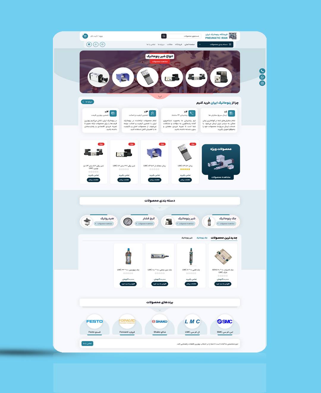 خانه / نمونه کارها / طراحی سایت فروشگاهی پنوماتیک ایران طراحی سایت فروشگاهی پنوماتیک ایران فروشگاه پنوماتیک ایران فعالیت خود را در سال ۱۳۸۵ با هدف تأمین و تعمیر قطعات اتوماسیون صنعتی، پنوماتیک و هیدرولیک آغاز کرد. از همان ابتدا، تمرکز ما بر ارائه خدمات و محصولات باکیفیت به صنعتگران و مشتریان عزیز بوده است. این فروشگاه در لالهزار تهران، قلب صنعت کشور، مستقر بوده و همواره تلاش کرده است تا بهعنوان مرجعی معتبر و قابلاعتماد در این حوزه شناخته شود. طراحی سایت فروشگاهی با سی ام اس ایران اطلاعات پروژه مدت زمان پیاده سازی: 4 هفته زبان برنامه نویسی: وردپرس نوع طراحی: فروشگاهی آدرس وب سایت: http://pneumaticiran.com دیگر نمونه کارهای مرتبط طراحی سایت فروشگاه پوشاک ارش ساغری طراحی سایت شرکت افغان لاکی طراحی سایت گروه مهندسی ارغوان طراحی سایت فروشگاهی آروشا کیش طراحی سایت فروشگاهی Ataroma