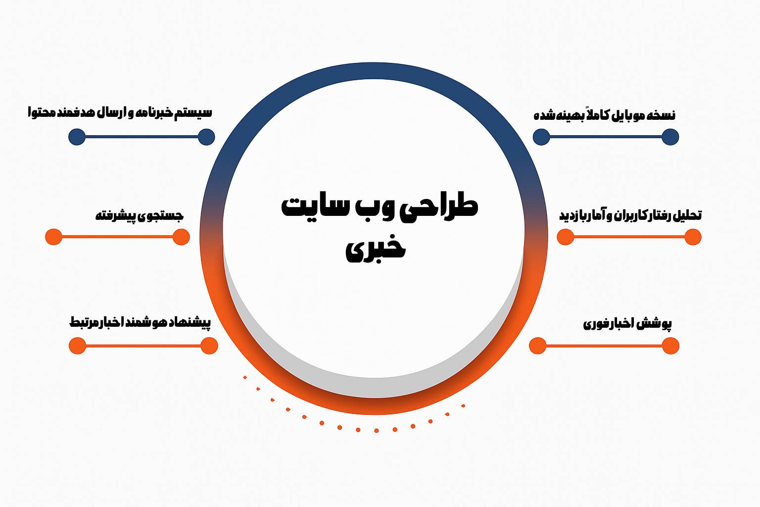طراحی وب سایت خبری یک مسیر مرحلهای و هدفمند است که با شناخت نیازهای رسانه آغاز میشود و به راهاندازی یک بستر پایدار برای انتشار اخبار ختم میگردد. در این فرآیند، توجه به تجربه کاربری، سرعت انتشار محتوا و زیرساخت فنی نقش مهمی در موفقیت نهایی سایت خبری ایفا میکند.